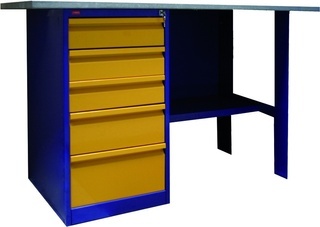 Верстак металлический однотумбовый с драйвером. Состоит из отдельных модулей: столешница (1200мм) из МДФ, покрытая оцинкованным листовым металлом;комплект для верстака К - 2/1.2, 2, 2/1.6 (стенка задняя металлическая, металлическая верстачная опора и полка верстачная с нагрузкой до 40 кг);драйвер с пятью выдвижными ящиками (нагрузка 30 кг), запирающимися на замок